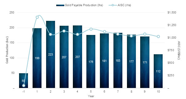 Figure 1: Payable Gold Production and AISC1 Profile by Year