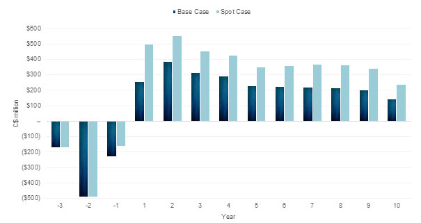 - Average base case LOM annual FCF of $158 million ($296 million per year in the first 5 years)