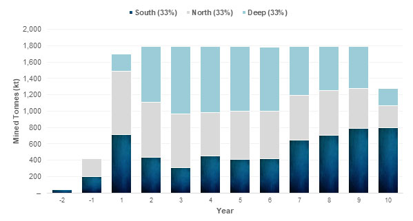 | Total Tonnes Mined | kt | 1.7 | 43.2 | 419.8 | 1,695.1 | 1,788.6 | 1,789.0 | 1,786.9 | 1,793.4 | 1,783.1 | 1,788.5 | 1,788.6 | 1,793.4 | 1,272.7 | 71.5 | - | 17,815.4 |